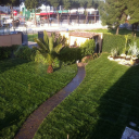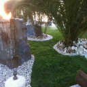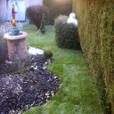 Giardino di circa 500 mq. E' stato realizzato un apporto di terreno e livellamento. Messa a punto impianto di irrigazione. Stesura prato a rotoli.